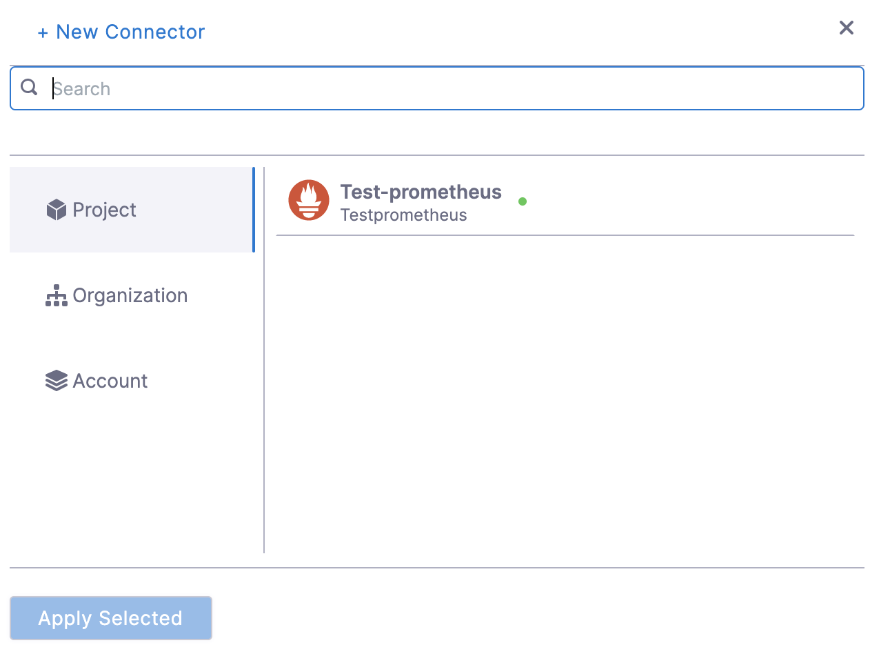 5. After selecting the connector, click Apply Selected. The Connector is added to the Health Source.